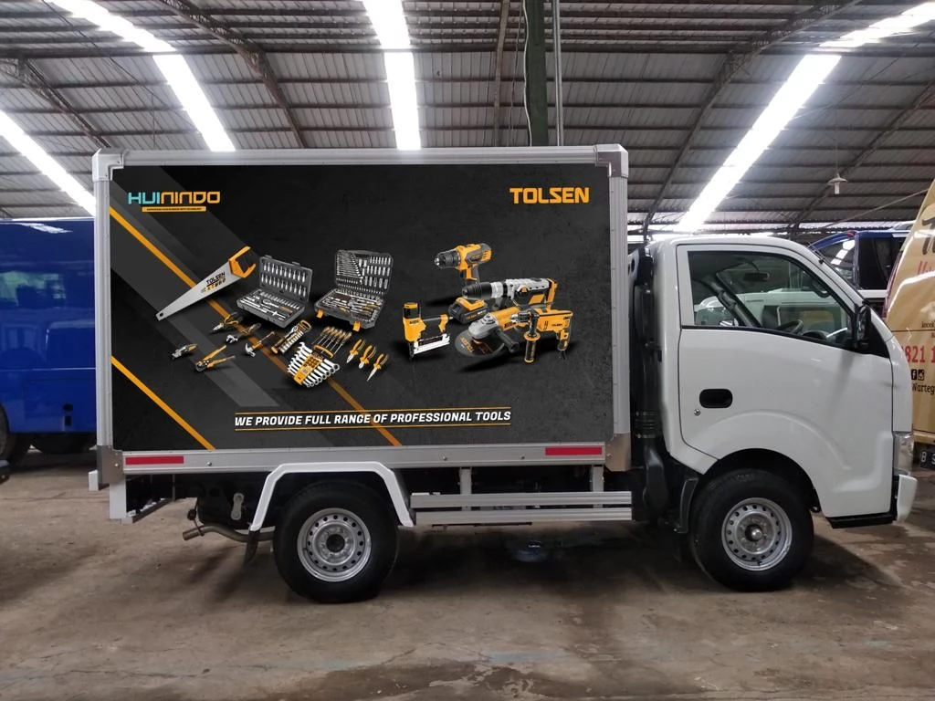 **2. Teknologi Printing Terkini Kami menggunakan teknologi printing terkini untuk memastikan hasil car branding yang tahan lama dan berkualitas tinggi. Warna yang cerah, detail yang tajam, dan daya tahan terhadap cuaca adalah prioritas utama kami, sehingga branding mobil box Anda tetap menonjol dalam segala kondisi.